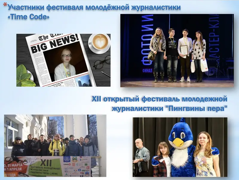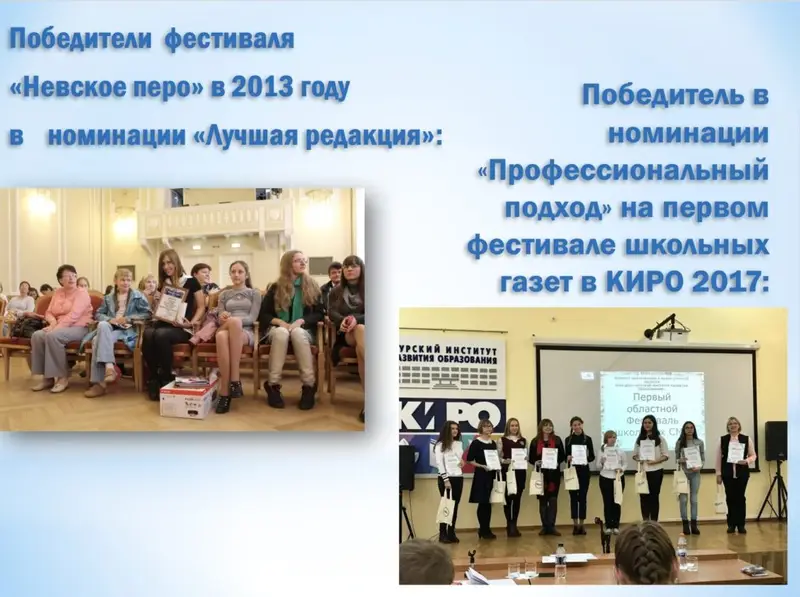 У коллектива редакции множество побед: от городских в Курске, региональных в Курской области, до конкурсов всероссийских и международных медийного направления, в том числе конкурсов ООДО «Лига юных журналистов», где ежегодно выигрывают путёвки в МДЦ «Артек», «Сириус». Среди фестивалей, в которых мы были участниками и стали победителями — «Волга-ЮНПРЕСС» (г. Тольятти), «Волжские встречи» (г. Чебоксары), «TIME CODE» (г. Екатеринбург), «Префикс+10» (г. Курск, Алушта), «Невское перо» (г. Санкт-Петербург), «Пингвины пера» (г. Москва). В декабре 2019 года редакция журнала представила Курскую область на «Всероссийском форуме талантливой молодежи» (г. Москва).