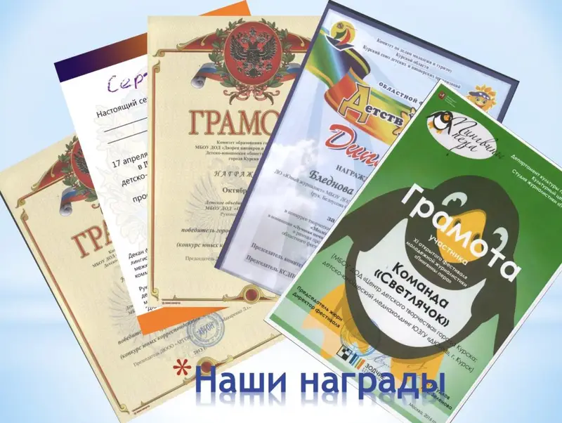 Обучающиеся медиашколы «ДюйМ» неоднократно становились стипендиатами Главы города Курска, обладателями премии Губернатора Курской области. Ребята награждались путёвками в МДЦ «Артек», ОЦ «Сириус», ВДЦ «Орлёнок». К окончанию обучения каждый может собрать портфолио своих творческих публикаций не только в журнале Центра детского творчества, но и на страницах региональных СМИ, таких как: «Городские извести», «Курская правда», «Молодая гвардия», «Друг для друга».