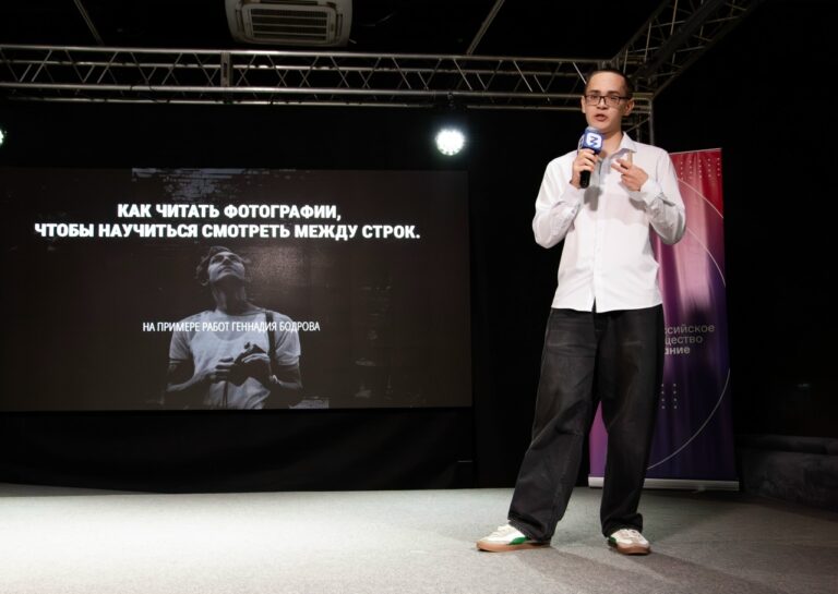 Спикер МЕДИабатла Дмитрий Зиновьев, оператор ГТРК, студент Курского колледжа культуры направления «Фото и видеотворчество», погрузил участников в тему «Композиция фото».